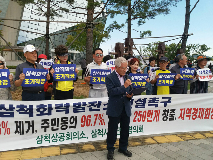 [로컬세계 김재덕 기자]강원 삼척시민 및 삼척상공회의소, 삼척사회단체협의회 20여 명은 29일 세종시 정부청사 컨벤션센터에서 삼척화력발전소 원안 건설를 요구했다.