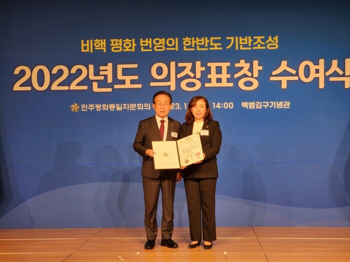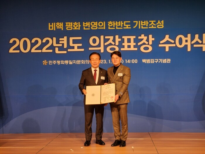 이번 민주평화통일자문회의 의장표창은 2022년도 평화 번영의 한반도 기반 조성 활동에 공적이 탁월한 자문위원에게 수여하는 것이다.