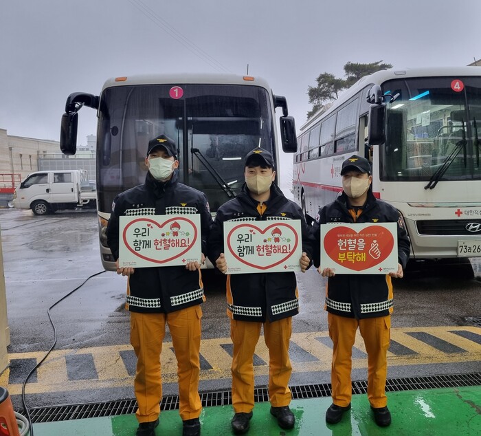 ▲ 부산소방학교는 겨울철 특성 및 코로나19,독감 등 감염병의지속적 유행에 따른 혈액 부족 상황의 동참하고자 '사랑의 헌혈' 행사를 개최했다. 부산소방재난본부 제공 |