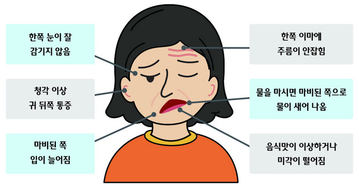 ▲ [그림]안면신경마비 환자의 증상 [강동경희대병원 제공] |