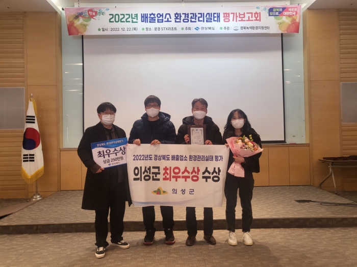 [로컬세계=박상진 기자]경북 의성군은 지난 22일 경상북도 내 23개 시.군을 대상으로 한 2022년 배출업소 환경관리 실태평가에서 최우수상을 수상했다고 27일 밝혔다.