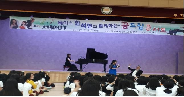 이번 콘서트는 2017년 태백 행복교육지구 관내 학교 진로진학 행사 지원의 일환으로 황지여중생들이 평소 접하기 어려운 클래식을 통해 ‘꿈을 찾는 자신의 인생은 정말로 행복 할 수 있다’는 긍정적 마음을 가질 수 있도록 하기 위해 마련됐다.