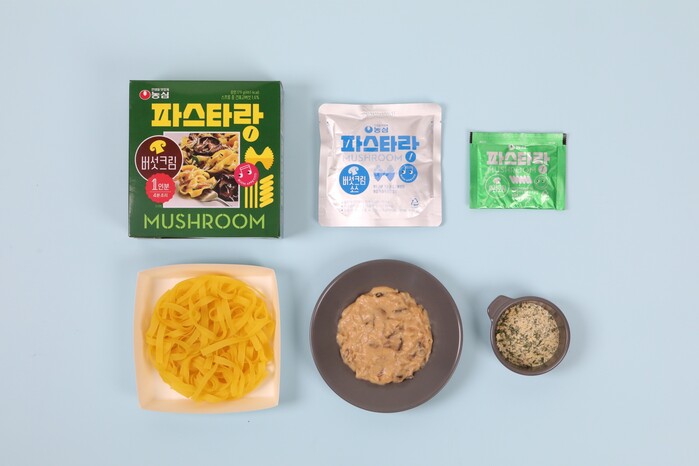 ‘버섯크림’은 부드러운 크림의 맛과 표고버섯의 풍미가 어우러진 소스가 특징이다. 진한 치즈 풍미를 품고 있는 빵 가루를 후첨토핑으로 넣어 씹는 재미와 맛을 더했다. ‘볼로네제’는 소고기와 돼지고기, 허브와 버터가 어우러져 깊은 풍미를 느낄 수 있는 토마토 소스를 넣었다. 총 조리시간은 4분으로, 면을 끓이고 소스와 함께 볶으면 완성된다. 농심 관계자는 “레스토랑에서 먹는 파스타를 집에서 즐길 수 있는 수준으로 만들었다”라고 설명했다.