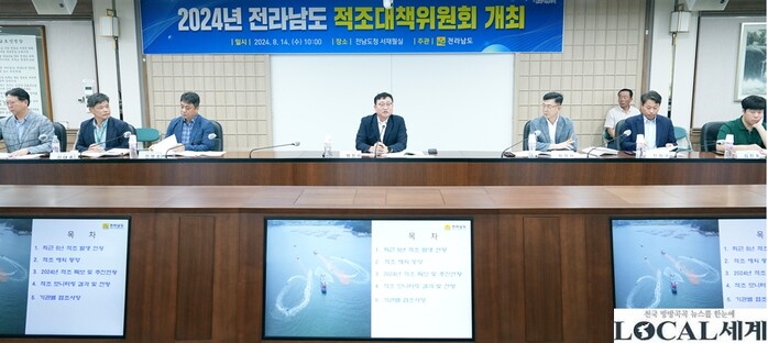 [로컬세계 = 김명진 기자] 전라남도는 적조주의보 확대 발령에 따라 14일 도청에서 적조 예찰 및 방제전문가, 양식어업인 등이 참석한 가운데 적조대책위원회를 긴급 소집, 기관별 역할과 시군별 방제대책을 점검하고 피해 최소화 방안을 논의했다.