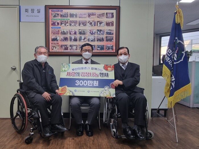 [로컬세계 부산=맹화찬 기자]부산지방보훈청(청장 전종호)은 지난 6일 부산의용촌의 후원으로 300만원 상당의 김장나눔 전달식을 가졌다.