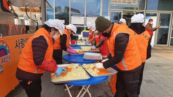[로컬세계 박세환 기자]아름다운 동행 봉사단(회장 정한교)는 지난 5일부터 7일까지 사흘간 울진 국민체육센터 앞에서 산불 이재민을 위한 짜장면(1500인분)급식 봉사에 앞장섰다.