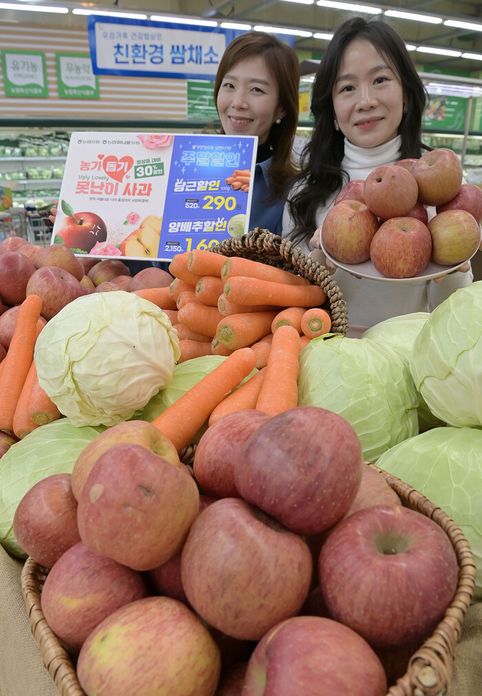 또 하나로마트 양재점에서는 사과 농가 판로 확대를 위해 크기가 작거나 약간의 흠집이 있는 못난이 사과를 23일부터 3월 1일까지 7일간 정상상품 대비 30% 할인된 가격으로 판매한다.