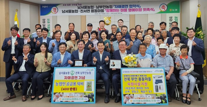 이날 행사에서 부안군 권익현 군수가 남서울농협 안용승 조합장을 부안군 진서면 용동마을 명예이장으로 위촉하고, 남부안농협 최우식 조합장은 남서울농협과 자매결연을 체결했다.