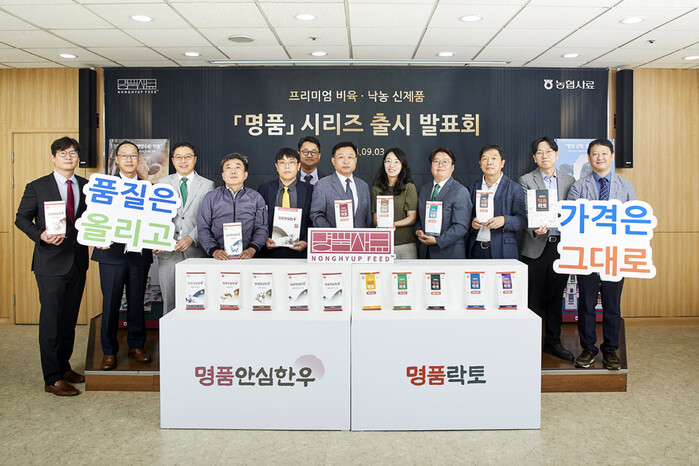 ▲농협사료가 지난 4일, 비육과 낙농 프리미엄 사료인「명품안심한우」와「명품락토」를 출시했다. |