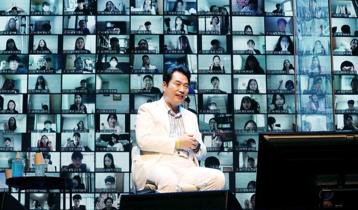 | ▲백군기 용인시장이 화상회의 앱인 줌(ZOOM)과 유튜브 라이브 방송으로 진행된 ‘랜선 페스타’에서 예비 공직자들과 이야기를 나누고 있다. 용인시 제공 |
