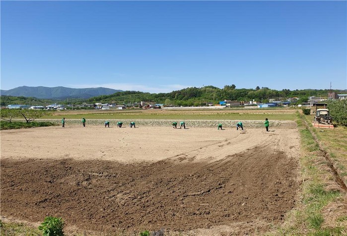 이날 파종을 위해 18개 읍면 새마을협의회장과 부녀회장 새마을지도자 등 20여 명이 참여했으며, 더워진 날씨에도 불구하고 구슬땀을 흘리며 파종을 완료했다.