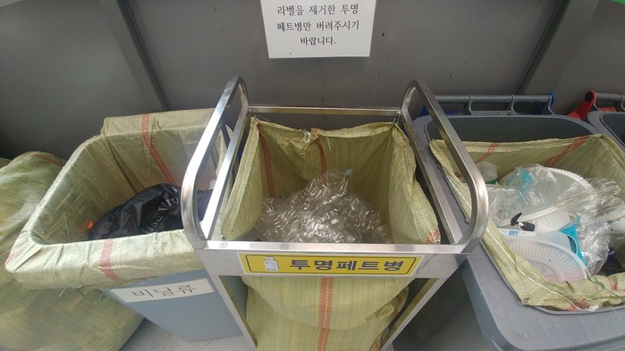 종이팩은 내용물을 비우고 헹군 뒤 말려 압착 후 배출하면 되고, 투명페트병은 내용물을 비운 뒤 라벨지를 제거하고 압착해 배출하면 된다.