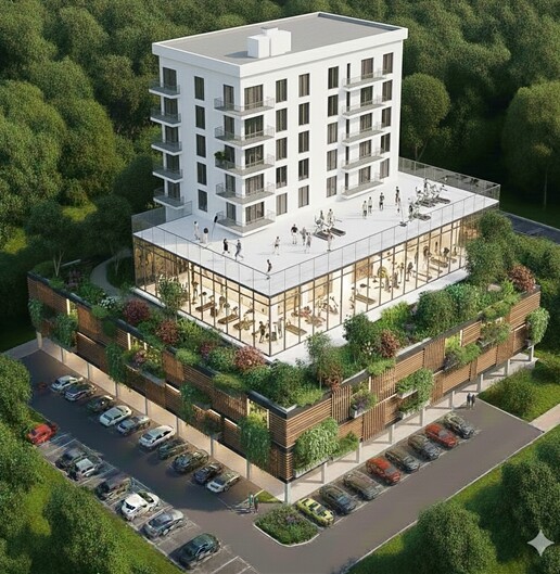 건물은 지상 8층 1개 동 규모로 연면적 6,500㎡이며, 1~2층에는 주차장 100면을 조성하고 3층에는 약 750㎡ 규모의 복합체력단련(피트니스)센터를 설치한다. 4층부터 8층까지는 전용면적 26㎡ 규모의 주택 100호가 들어선다.