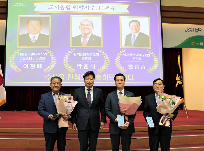 농협중앙회 서울본부(본부장 황준구)는 농협중앙회가 실시한 '2022년 도시농축협 역할지수+' 연도말 평가에서 관악농협(조합장 박준식), 남서울농협(조합장 안용승), 서울경기양돈농협(조합장 이정배) 등 3개소가 우수 사무소로 선정됐다고 5일 밝혔다.