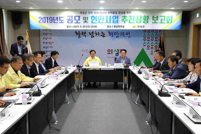 [로컬세계 박상진 기자]경북 의성군은 지난 29일 영상회의실에서 김주수 의성군수를 비롯한 각 국·실과소관장이 참석한 가운데 ‘2019년 공모 및 현안사업 추진상황 보고회’를 열었다고 30일 밝혔다.
