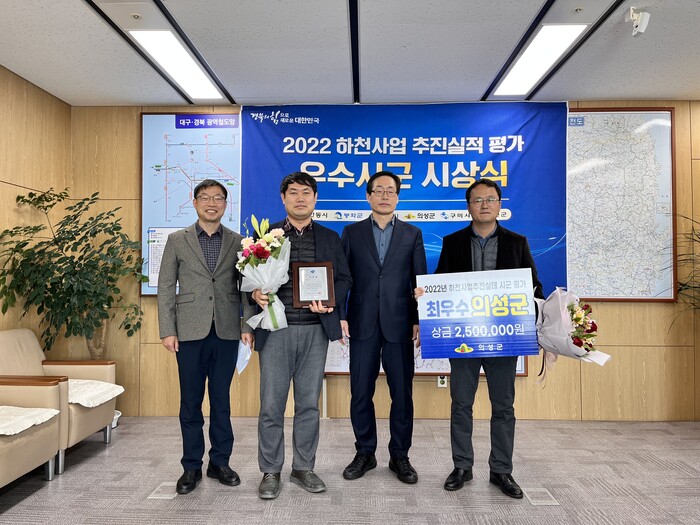 [로컬세계=박상진 기자]경북 의성군은 경상북도에서 실시한 2022년 하천사업 추진실적 평가에서 지난해에 이어 3년 연속‘군부 최우수상’을 수상했다고 27일 밝혔다.