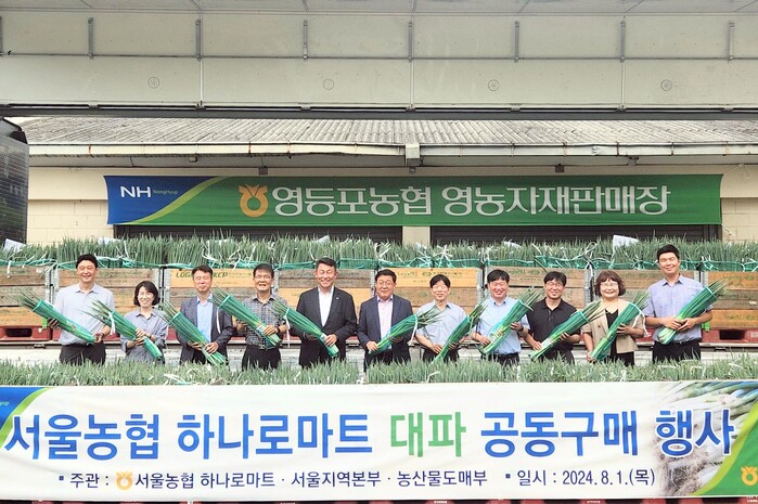 ▲서울농협 하나로마트는 1일 영등포농협 영농자재판매장에서 소비자 물가안정을 위해 산지에서 직거래로 구매한 대파 판매행사 및 쌀 소비촉진 행사를 개최하였다. (왼쪽 세 번째부터) 최장현 안성농식품물류센터장, 김영문 서울농협 하나로마트점장협의회장, 김상수 농협서울본부장, 백호 영등포농협 조합장, 백영종 영등포농혐 상임감사. |