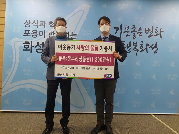 화성시 안녕남로 131에 위치한 ㈜화성여객(대표 허상준)은 26일 온누리상품권 1200만원(1만원권 1200장)을 시에 기부했다.