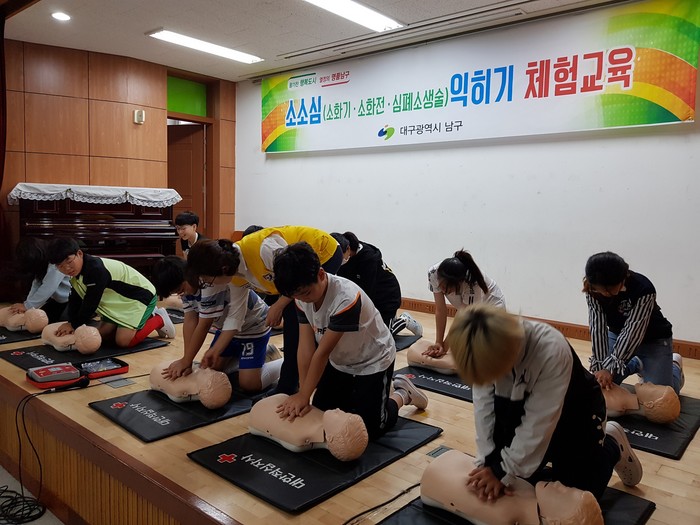 이날은 긴급 화재사고에 대비한 소화기 사용법, 심정지 등 위급한 상황에 대비한 심폐소생술(CPR) 등 응급처치 교육을 실시해 재난대응역량을 강화하고 안전 의식을 높이는 데 중점을 두었다.