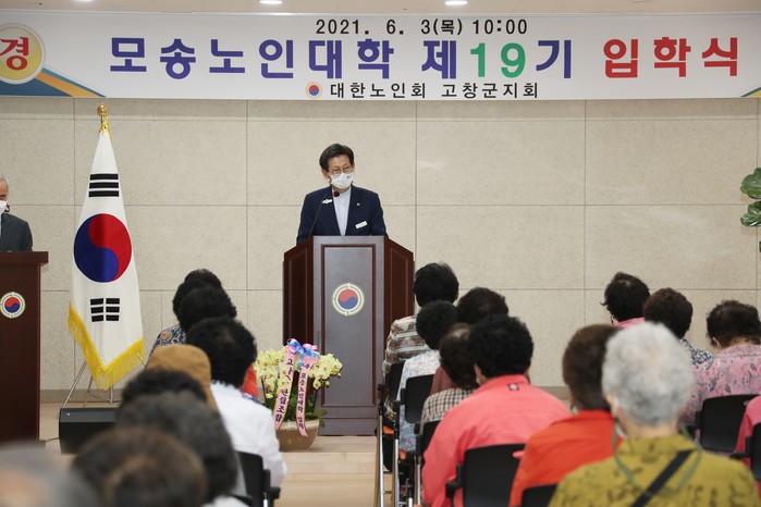 이날 입학식에는 유기상 고창군수와 대한노인회 고창군지회 정기수 회장, 모송노인대학 김동식 학장, 입학생 등 60여 명이 참석한 가운데 방역수칙을 준수해 진행됐다.