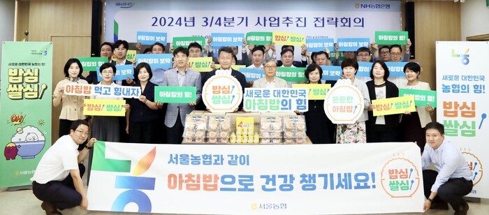 농협 서울본부(본부장 김상수)는 우리 쌀 소비를 촉진하기 위해 14일 서울농협 본관 중회의실에서 ‘아침밥 먹기’ 운동 회의를 개최했다.