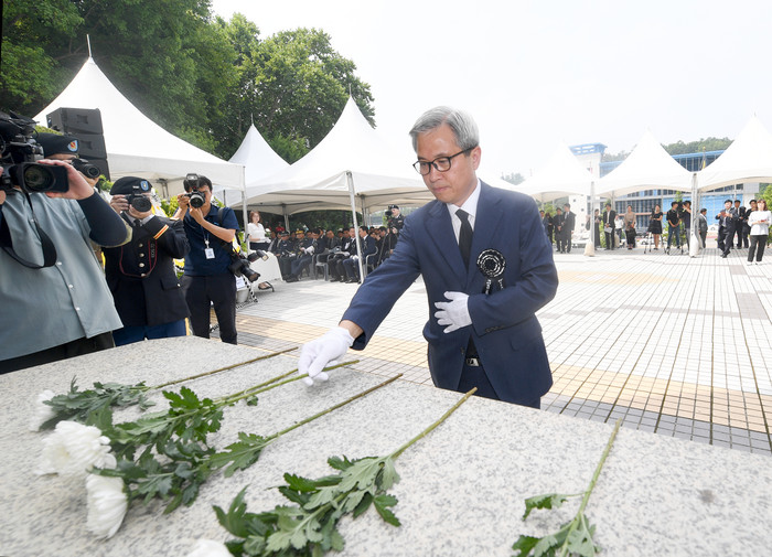 | ▲헌화를 하고 있는 곽상욱 오산시장.(오산시 제공) |