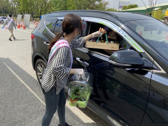 [로컬세계 최아침 기자]경기 고양시 대표 화훼인 다육 세트 등을 드라이브 스루를 통해 판매하고 있다. 코로나 19로 어려움을 겪고 있는 화훼농가를 돕기 위한 ‘고양 드라이브 스루 플라워 마켓‘이 지난 2~3일 고양시 호수공원에서 열렸다. 사회적 거리두기를 하면서 꽃을 구매하려는 시민들의 발길이 이어졌으며, 특히 5월 가정의 달을 맞아 카네이션 꽃바구니 등이 인기를 끌며 완판됐다.