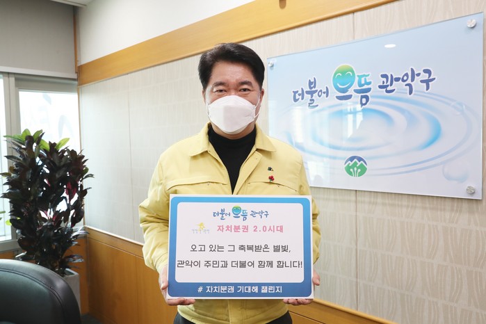 [로컬세계 임종환 기자]박준희 관악구청장이 11일, 자치분권 2.0시대 개막을 응원하기 위해 진행 중인 ‘자치분권 기대해’ 챌린지에 참여했다고 밝혔다.
