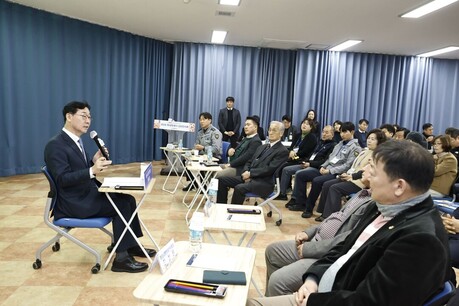 | ▲이홍근 의원이 자동차전문정비사업조합 사무실에서 경기도 자동차정비업 지원 관련 간담회를 하고 있다. 경기도의회 제공 |