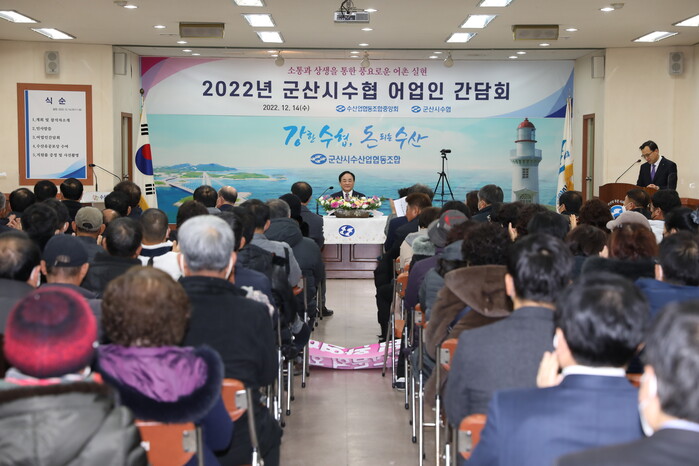 14일 임 회장은 전북 군산시수협에서 관내 어업인을 초청해 간담회를 갖고, 최일선 어업 현장을 지키고 있는 어업인을 격려했다.