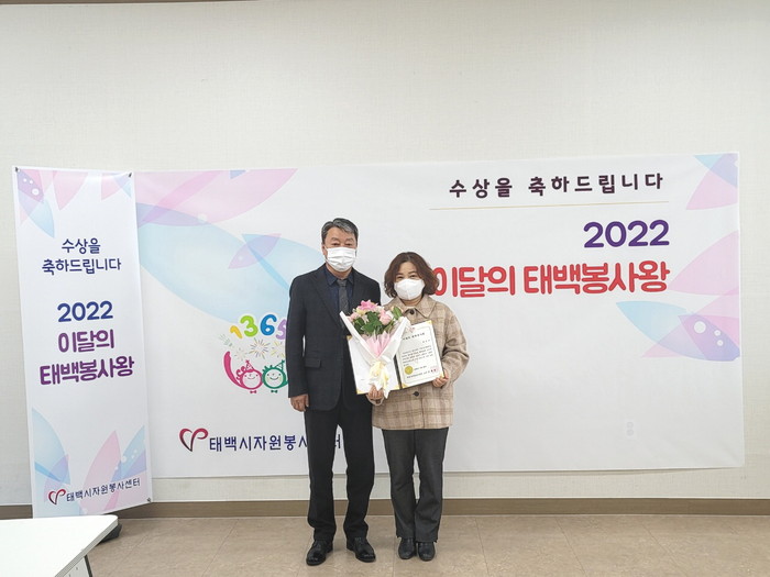 [로컬세계 박상진 기자]강원 태백시자원봉사센터(소장 김재찬)는 지난달 28일 태백시자원봉사센터 회의실에서 1월 채성녀 자원봉사자를 ‘이달의 태백봉사왕’으로 선정하고 시상을 진행했다.