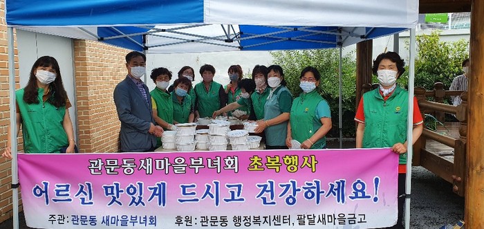 이날 봉사는 새마을부녀회 회원 20여 명이 참여하여 코로나19로 활동이 위축되고, 무더위로 힘들어하는 어르신들과 어려운 이웃들이 조금이나마 기력을 회복하고 활력을 되찾는데 도움을 줄 수 있도록 관문동 새마을부녀회가 발 벗고 나섰다.