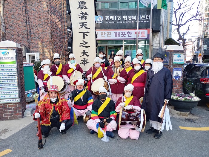 [로컬세계 부산=맹화찬 기자]부산 영도구 봉래1동 발전협의회(협의회장 조진성)는 2023년 설명절을 맞이하여 지난 1월 24일, 25일 양일 간 주민25명으로 구성된 봉래터울림 풍물패와 단체원 15명이 참여한 가운데 “풍물한마당 지신밟기” 행사를 개최하였다.