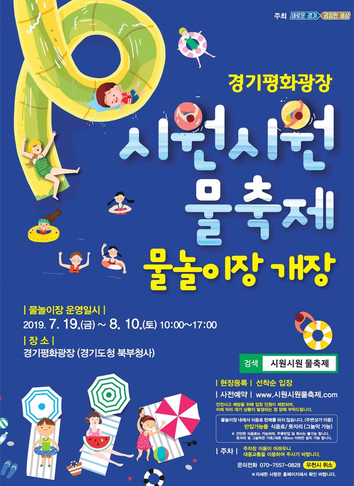 ‘시원시원 물축제’는 경기평화광장이 경기북부를 대표하는 랜드마크로 자리잡은 만큼, 여름철을 맞아 도민들의 건전한 여가문화 활동을 지원하고자 열리는 여름 물놀이장 축제다.