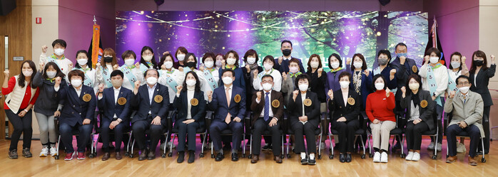 | ▲ 이상일 용인특례시장이 경기도 제11회 유아숲 교육대회 기념식에서 기념 촬영을 하고 있다. |