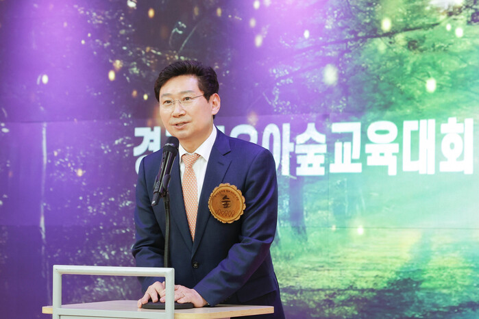 | ▲ 이상일 용인특례시장이 경기도 제11회 유아숲 교육대회 기념식을 찾아 축사를 하고 있다. 용인시 제공 |