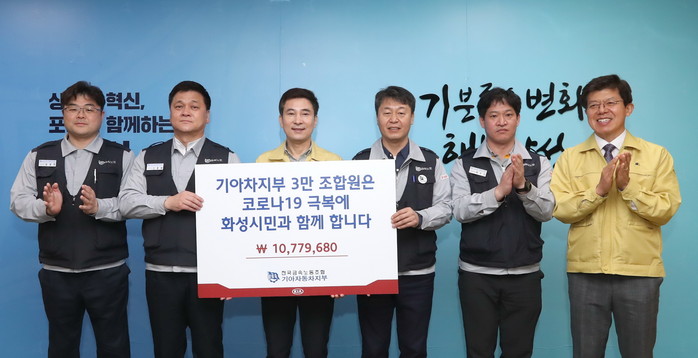 | ▲기아자동차노동조합 1000여 만원 후원 모습.(화성시 제공) |