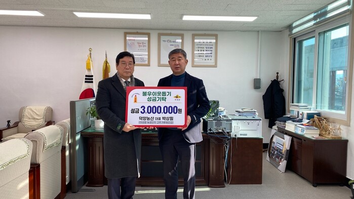 [로컬세계=박상진 기자]경북 의성군 의성읍 농공단지 고춧가루 제조업 덕양농산은 지난 20일 의성읍사무소를 방문해 희망2023나눔캠페인을 맞아 어려운 이웃을 위한 성금 300만원을 기탁했다.