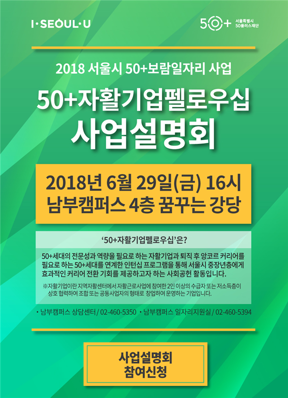 모집 정보 및 자세한 사항은 서울시50+포털(50plus. or.kr)에서 확인할 수 있다.