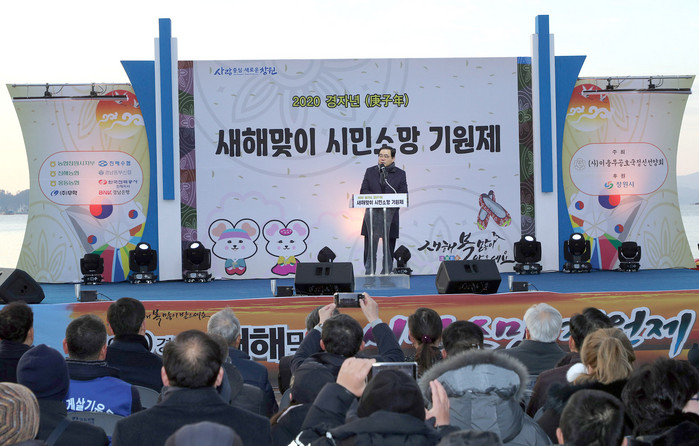 허 시장은 1일 진해루 ‘2020 경자년 새해맞이 시민소망 기원제’ 해맞이행사에서 간부공무원 20여 명, 시민 등 3000여 명과 함께 ‘창원 경제대도약과 창원대혁신의 해’의 출발을 알리며 성공을 기원했다.