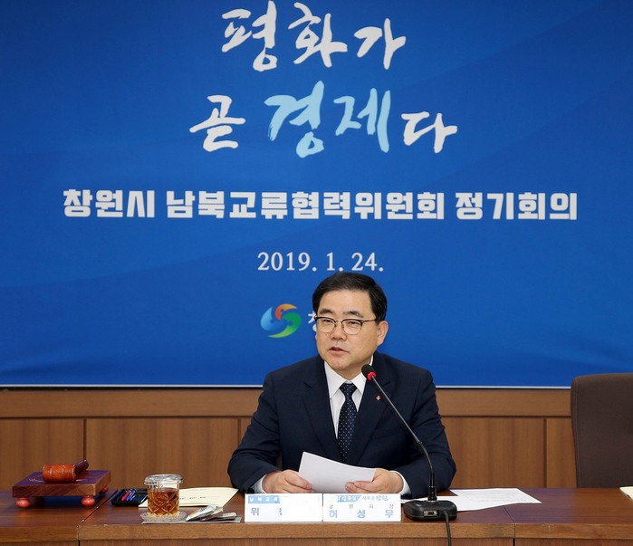 | ▲지난 1월 창원시 남북교류협력위원회 정기회의에서의 허성무 창원시장의 모습.(창원시 제공) |