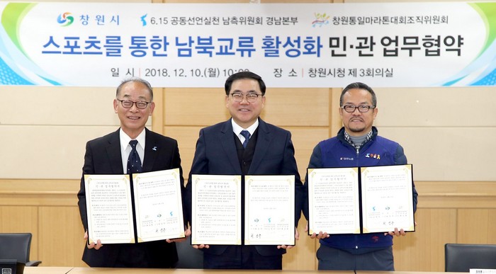 지난해 12월 10일에는 6‧15공동선언실천경남본부, 창원통일마라톤대회조직위와 스포츠를 통한 남북교류 활성화를 위한 민관협의체를 구성해 남북교류 협력 사업을 추진하고 있다.