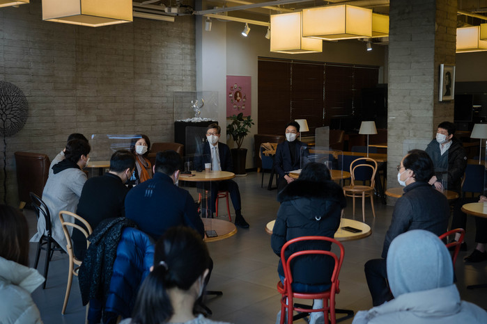 | ▲박형준 국민의힘 부산시장 예비후보는 어제오후 경기침체로 어려움을 격고 있는 스타트업 대표들과 간담회를 가젔다.(박형준 국민의힘 부산시장 예비후보 제공) |