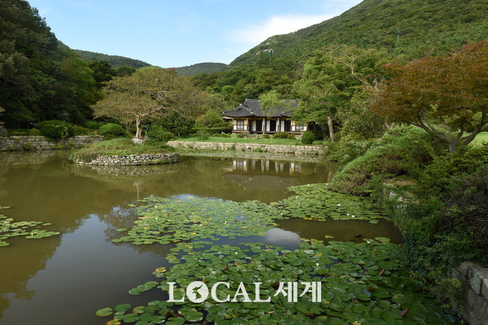 ▲소치가 그림을 그리던 운림산방 뜰 앞의 운림지 호수에 소치가 심은 배롱나무 한 그루가 자라고 있다.(사진=한상길 기자) |