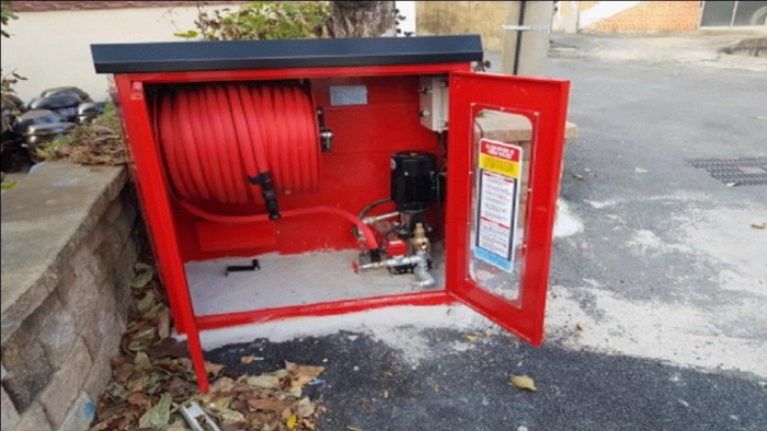 ▲지난해 말 부산 기장소방서와 한수원 고리원자력본부가 합동으로 기장군 철마면 장전마을에 설치한 비상소화장치함. 기장군 관내 총 4곳 중 한 곳으로 이번에 대형화재를 막는데 결정적인 역할을 했다. 기장소방서 제공 |