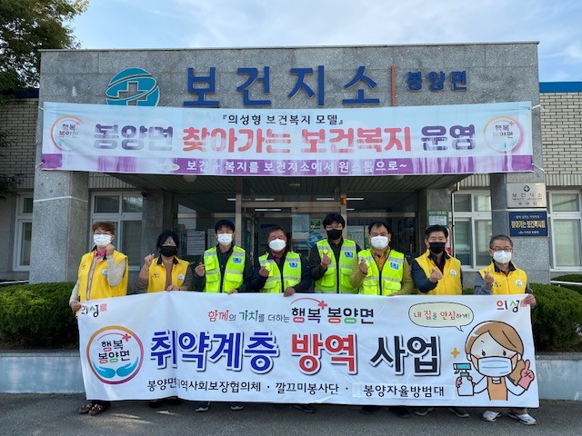 [로컬세계 박상진 기자]경북 의성군 봉양면 자율방범대, 지역사회보장협의체, 찾아가는 보건복지팀 8명은 지난달 26일 신평리에 거주하는 취약계층 5가구를 대상으로 방역 봉사를 실시했다고 1일 밝혔다.
