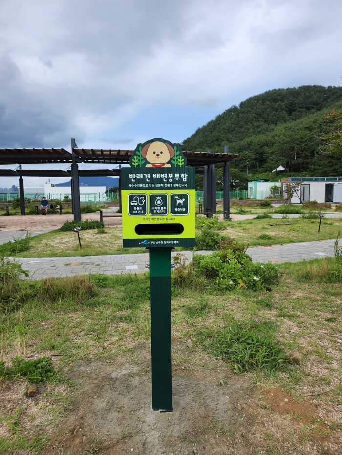 배변봉투함(높이 130㎝ 지주식 안내판 형태)은 △남구청 잔디밭 △BIFC(부산국제금융센터) 주변 산책로 △UN평화공원 △부산환경공단 남부사업소 △장자산 숲체험장 △오륙도 해파랑길 관광안내소 부근 등 평소 반려견의 배설물로 주민 민원이 많은 6개소에 10개를 설치했다.