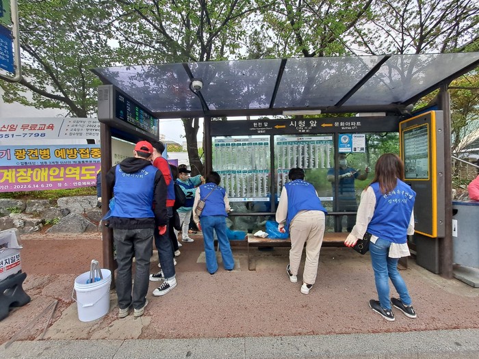 이날 한국자유총연맹 비전2동분회 회원 10여명이 모여 시민들이 이용하는 버스승강장을 깨끗하고 안전하게 이용할 수 있도록 청소하고, 코로나19 확산 예방을 위한 방역도 병행했다.