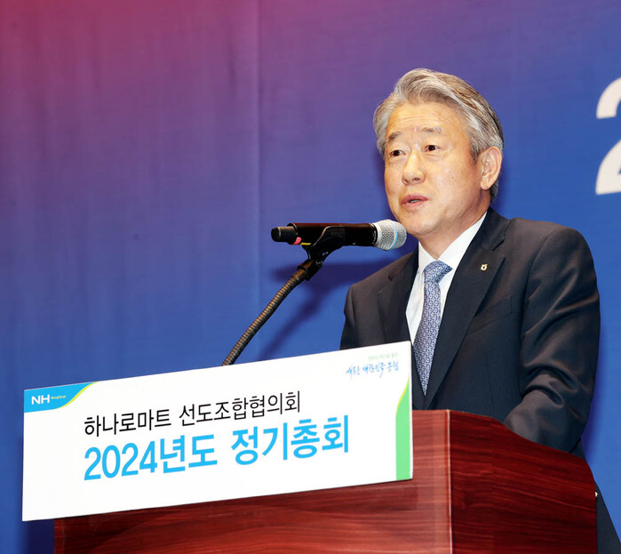 ▲농협이 30일 '2024년 하나로마트 선도조합협의회 정기총회'를 개최했다. 행사에 참석한 강호동 농협중앙회장이 인사말을 하고 있다. |