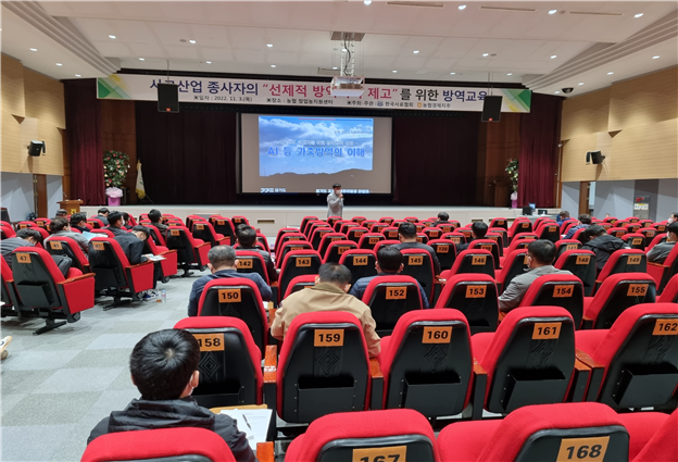 ▲ 사료산업 종사자들이 방역교육을 받고 있는 모습. 농협 제공 |